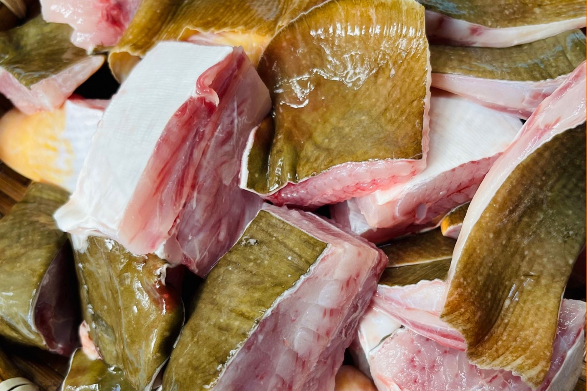 Cá đuối được tuyển chọn từ nguồn cá tươi, thân sáng màu, không mùi amoniac. Cá được sơ chế sạch: cắt bỏ hai bên mép, gỡ nội tạng và rửa qua nước lạnh giúp giữ nguyên vị ngọt tự nhiên. Thịt cá đuối dai nhẹ, thơm đặc trưng, rất phù hợp cho các món xào – nấu – lẩu – nướng.