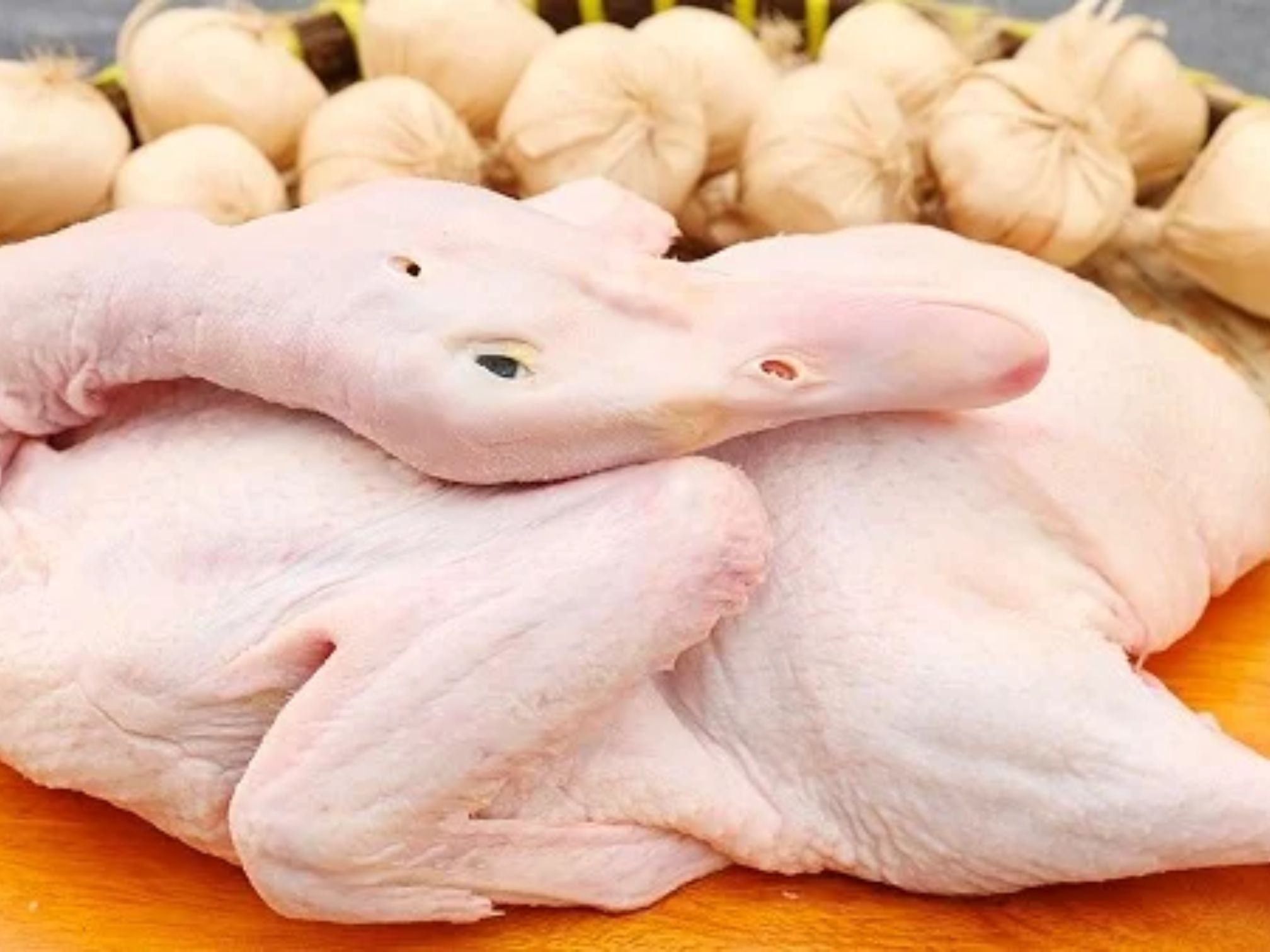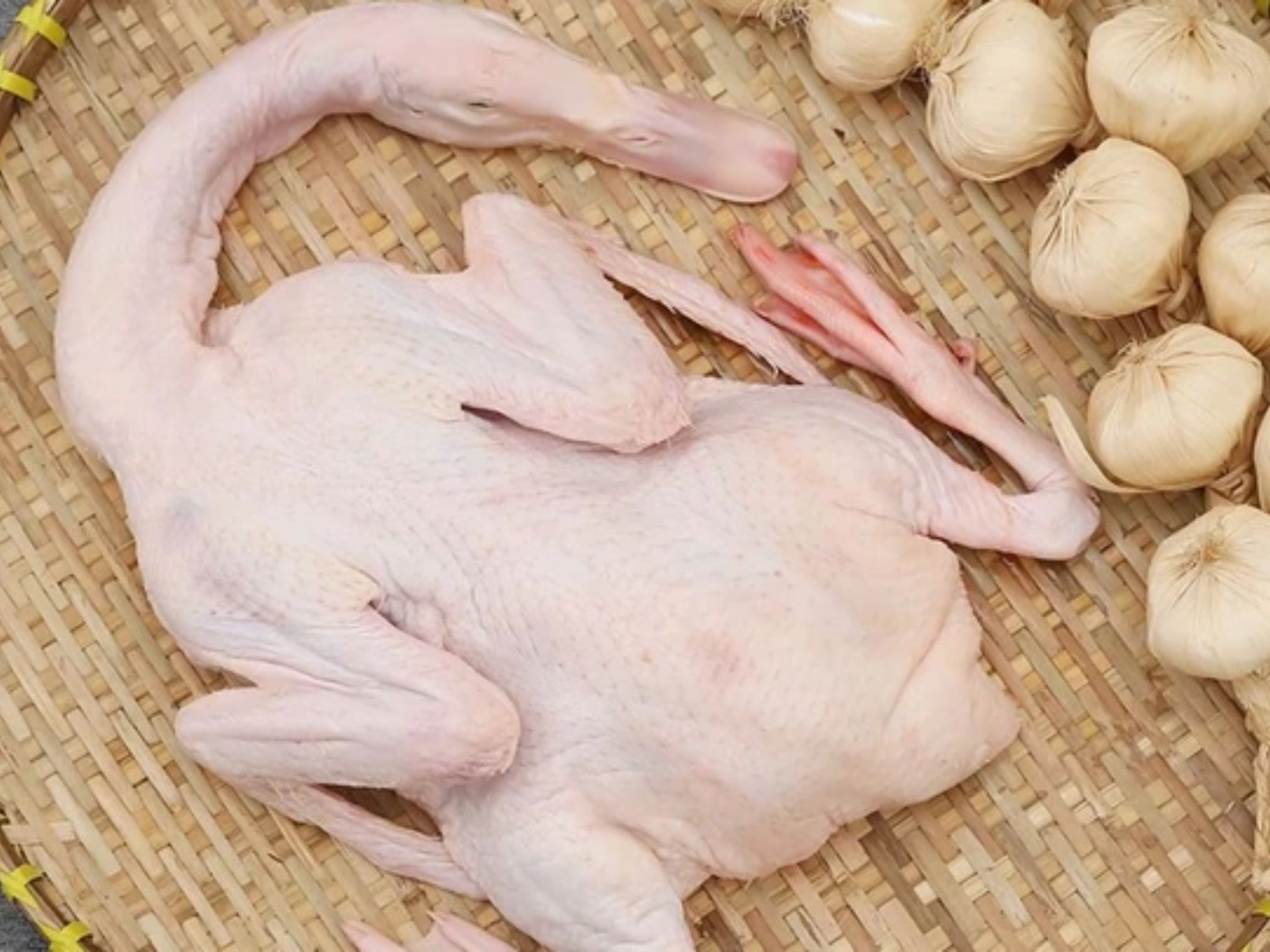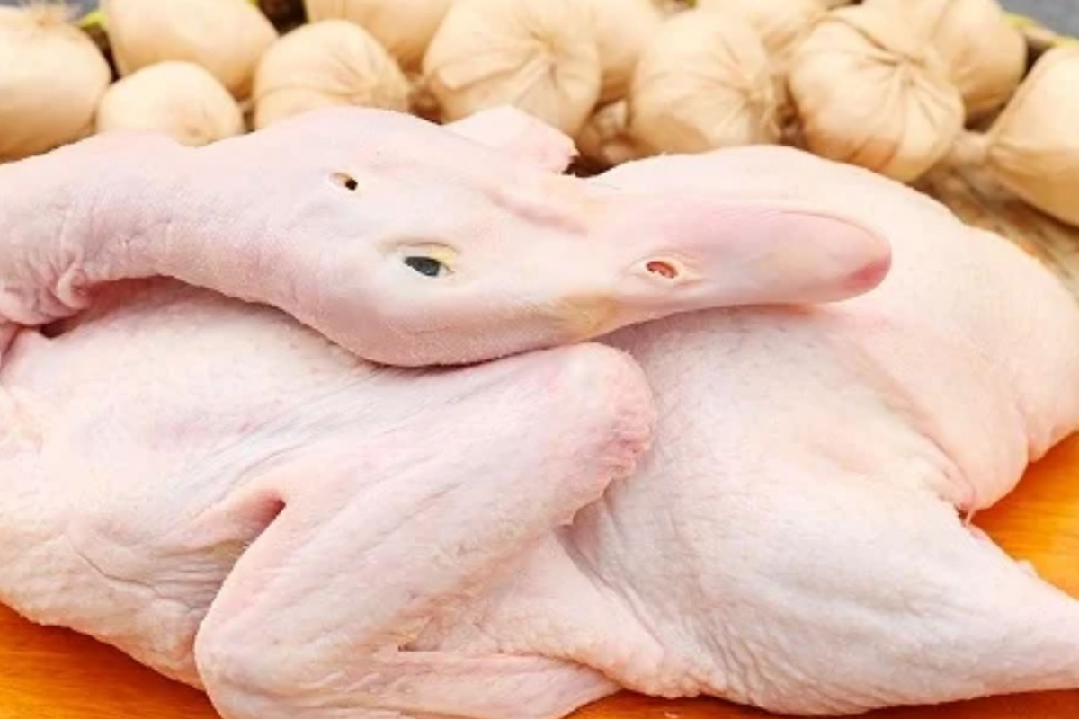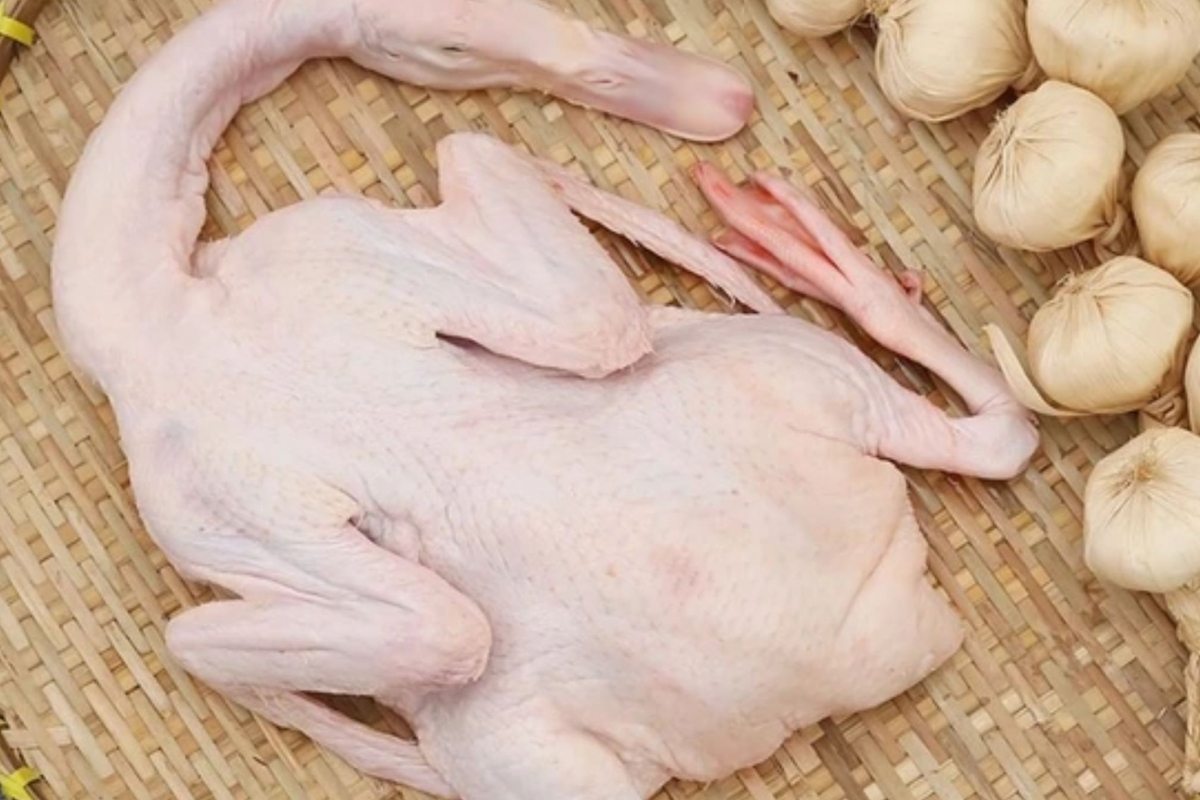 Đã làm sạch kỹ: nhổ lông – rút ruột – khử mùi – rửa sạch, kèm bộ lòng (tim, gan, mề).